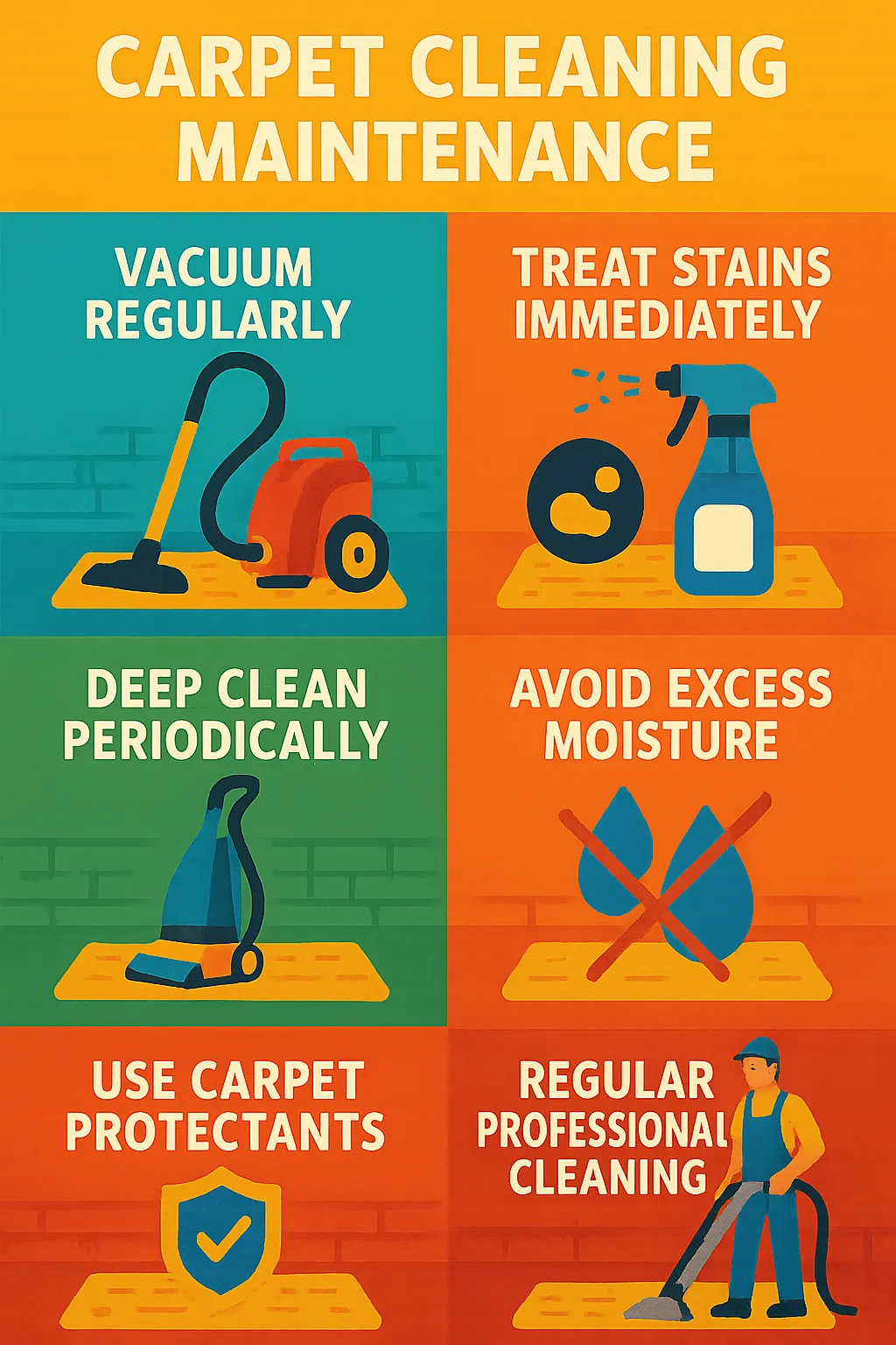 Regular vacuuming, timely stain removal, deep cleaning, and preventive habits like shoe-free zones are the foundation of long-lasting, healthy carpets. Natural odor control and stain-specific strategies keep carpets fresh and attractive. Avoid common errors for best results, and adjust your care routine for your household’s needs.